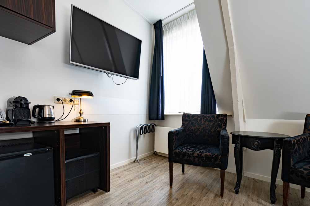 Grand Café Hotel Zeezicht heeft 24 kamers en verschillende kamertypes: een zeezicht kamer met uitzicht over de zee, een kamer met balkon oude jachthaven, de rustig gelegen steegkant kamer en een kamer met havenzicht. De kamers zijn voorzien van een tweepersoonsbed of twee aparte bedden, televisie, een minibar, een kluisje en een badkamer met douche, toilet en föhn. Er zijn in dit hotel geen kamers voor mindervaliden of kamers op de begane grond aanwezig.